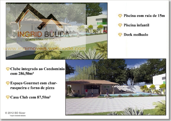 Clube integrado ao condomínio com 286,50 m2, composto de Casa Club com 87,50 m2, espaço gourmet com churrasqueira, forno de pizza e piscina com raia de 15m, deck molhado e piscina infantil.